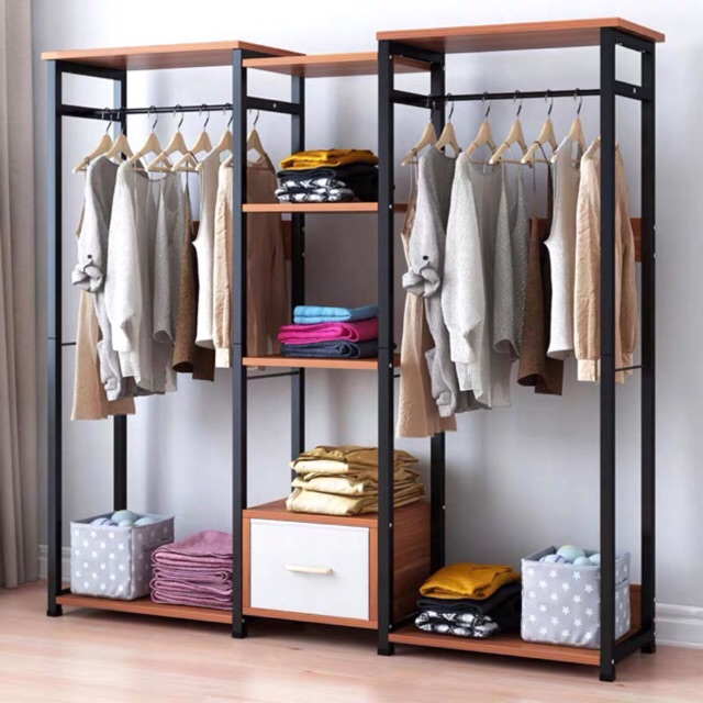 Promosi Baru Nordic Design Large Capacity Wardrobe Clothes Hanger With Drawer Open Closet Rak Almari Baju Shopee Malaysia